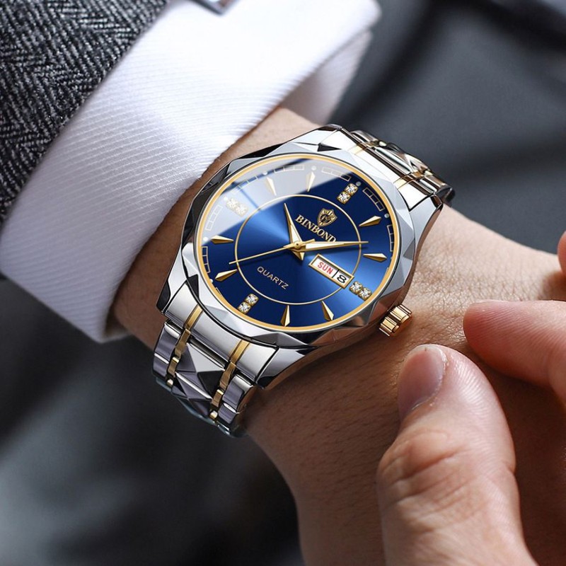 LUXURY BINBOND STAINLESS STEEL CLASSIC WATERPROOF WATCH FOR MEN-SILVER&BLUE